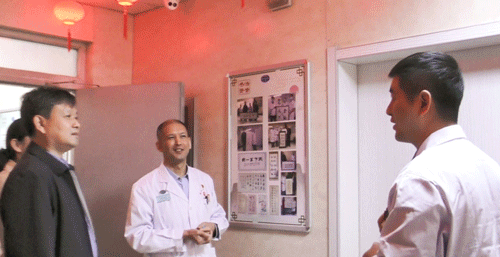 最后,领导们观看了钩活术纪录片。这部纪录片全面介绍了钩活术的发展历程、治疗原理和实践成果,让领导们对钩活术有了更加深入的了解和认识。同时参观了五楼病房,对钩活术治疗效果和专业服务给予了充分肯定。